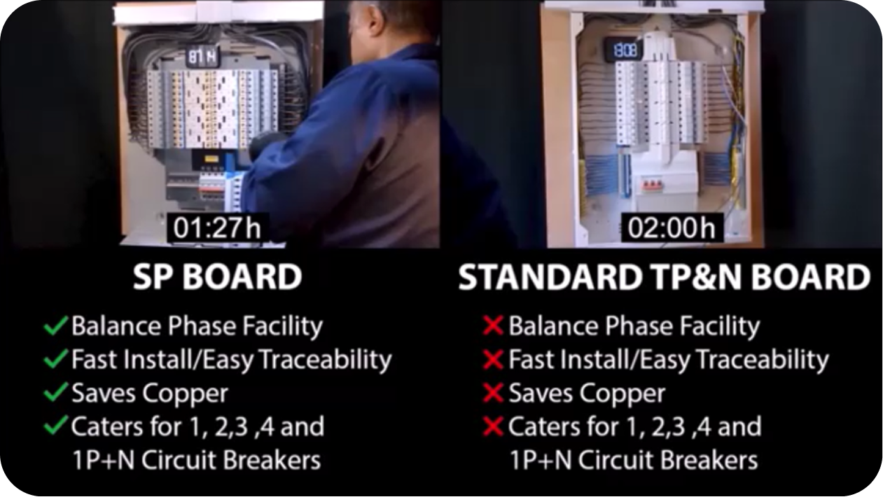 The board supports full circuit isolation (Live and Neutral) while the rest of the board remains live. This allows specific circuits to be safely worked on under “partial isolation” without shutting down the entire building.